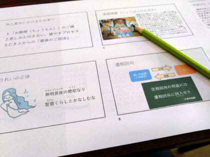 HOME > お寺日記 > 住職講師の勉強会 2026年1月27日 昨日は月に1回行っている住職講師の勉強会でした。 今回のテーマは、命の行き先という、誰にとっても他人事ではない大切なお話。 また、浄土真宗の歴史について学びました。 次回は2月20日(金)14時からです。 -お寺日記
