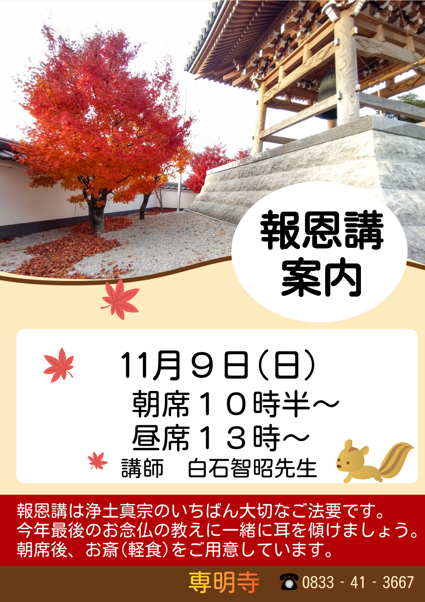 秋も深まり、報恩講の季節となりました。 報恩講は、親鸞聖人への感謝の思いを新たにする、一年で最も大切なご法座です。